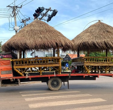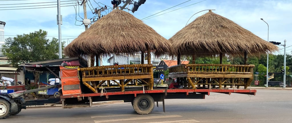 The finished shelters sell from USD 250 (KHR 1,000,000) and are chug-chugged through town, delivered to customers using the popular single-axle, multipurpose tractors.