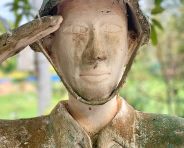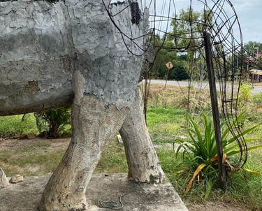 Mororot has an 'open plan' workshop just north of the Preah Dak, known for its basket weaving and tasty grilled chicken. His creative space is scattered with concrete soldiers, elephants, tigers and canines, in various states of completion, see below. Covid decimated demans for his skills, yet he remains philosophical, if not a tad sanguine about the future.
